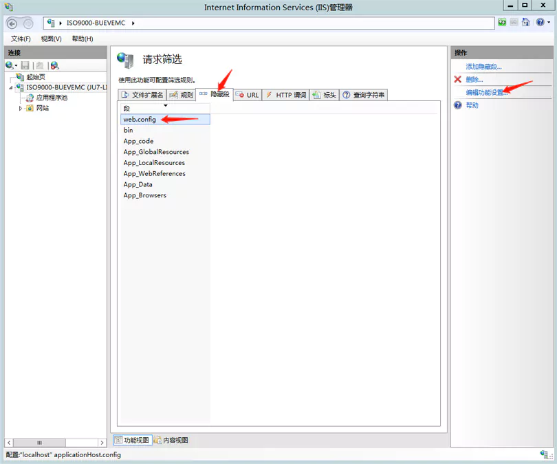 打开IIS管理器,根据箭头指示操作,完成后重启一下IIS