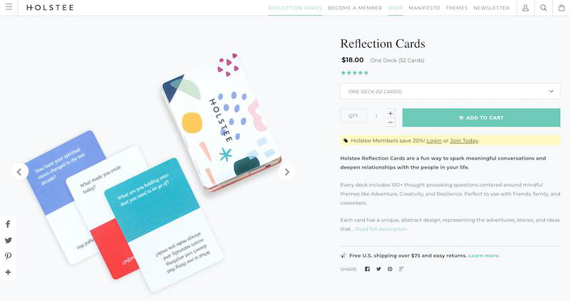 Holstee实现了在产品详细描述和规格、顾客评论、送货和退货及其品牌理念内容之间的流畅切换,这消除了买家无休止地滚动回到购买按钮的需要,相反,他们只需要直接跳回上面的部分。